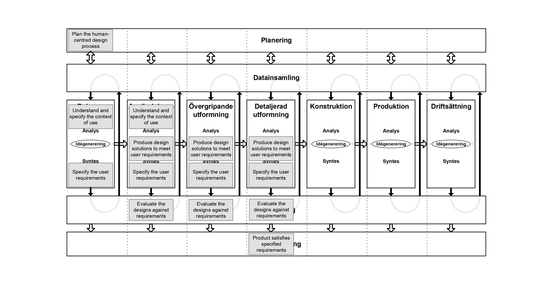 designaktiviteter som pågår kontinuerligt: planering, datainsamling,